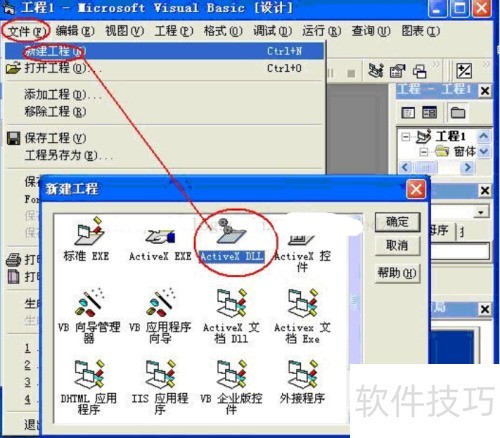 1、 文件菜单中选择新建,创建一个ActiveX DLL工程,具体步骤如下所示