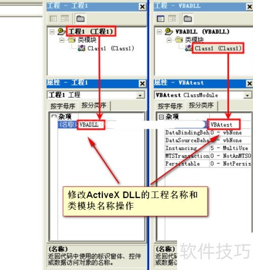 3、 更改ActiveX DLL工程名及类模块名的具体步骤如下所示