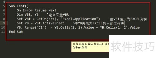 4、 在代码窗口中输入过程名为Test的相应代码。