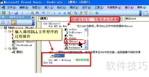 8、 创建新模块,编写调用DLL文件的程序操作步骤。