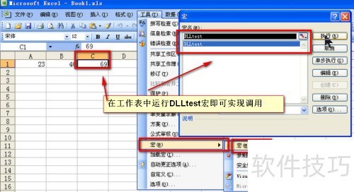 9、 运行工作表中的DLLtest宏即可完成调用操作