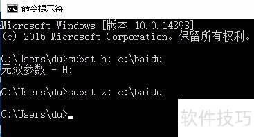 11、 subst命令用于将指定路径关联到一个驱动器号。