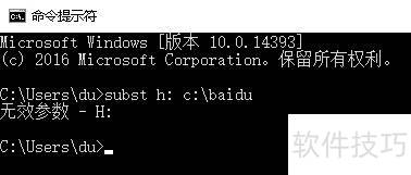 8、 输入subst h: c:aidu后回车,却提示无效参数H:,这是什么原因导致的?