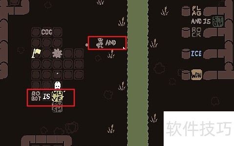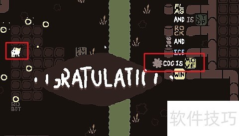 3、 采用相同方法,用齿轮替换机器熊,推动IS至指定位置,触发规则FLAG AND ROCK AND ICE IS WIN,此时巴巴兔触碰旗帜即可顺利通关。