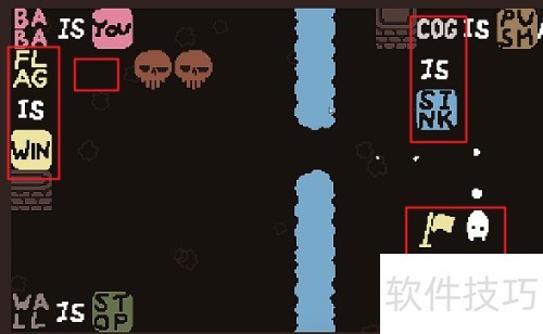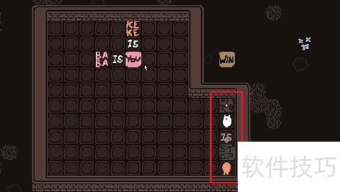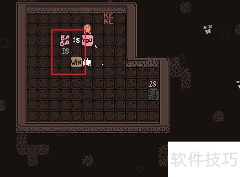 7、 把WIN推入墙内,拼成BABA IS WIN即可过关。