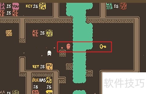 3、 将PULL向上推动,巴巴兔移至左侧区域,先组成KEKE IS PULL,再把颗颗推至与钥匙同一水平位置。