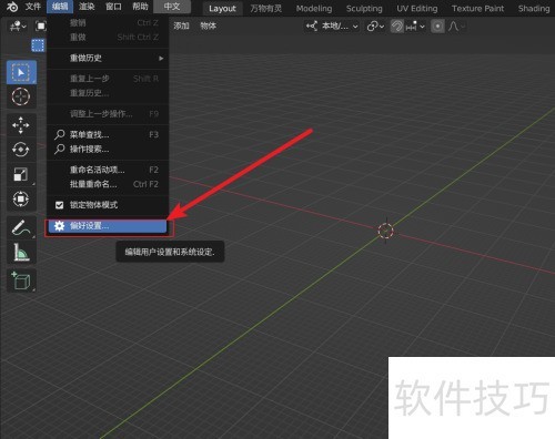 1、 启动Blende软件,点击左上角编辑功能按钮。