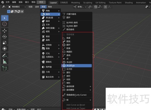 为Blender安装曲线插件Extra Objects,需进入偏好设置,选择插件,启用Extra Objects即可。