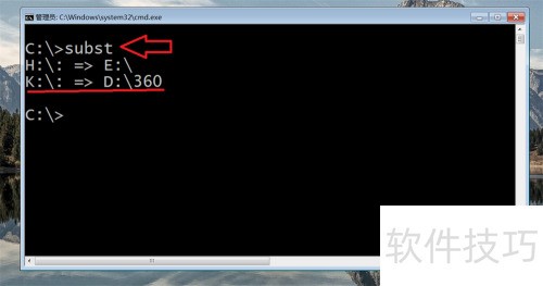 10、 将D盘中的360文件夹映射为K盘虚拟磁盘。