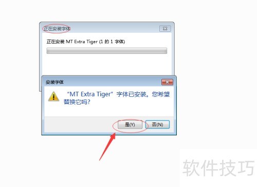 8、 第八步,将已复制的Mt Extra Tiger.ttf文件粘贴至第四步中的Fonts字体文件夹,若该文件夹中已存在同名文件,则选择替换;若无,则直接完成安装。