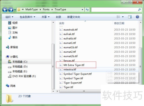 6、 将Math Type导出的文件粘贴至系统FRONT目录,确认安装即可完成导入。