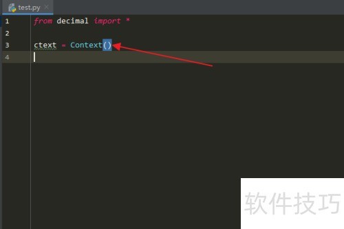 3、 在Python编辑区域中输入from decimal import *,以引入decimal模块中的全部类和方法,方便后续高精度计算操作的实现与调用。