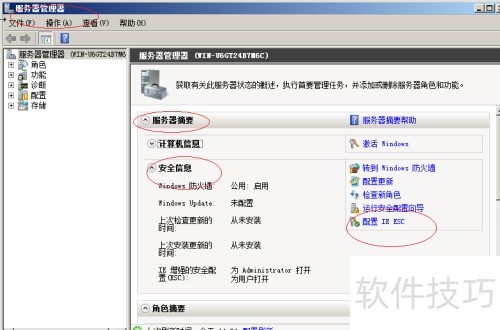 4、 点击服务器摘要、安全信息及配置IE ESC链接