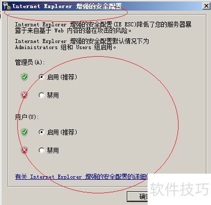 5、 出现Internet Explorer增强安全配置窗口时,请选中启用选项。