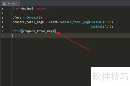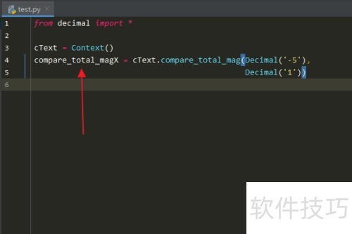 5、 输入compare_total_magX = cText.compare_total_mag(Decimal(-5), Decimal(1)),然后按下回车键执行该命令。