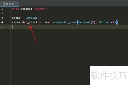 5、 输入remainder_nearX = cText.remainder_near(Decimal(9), Decimal(4)),然后按下回车键执行命令。