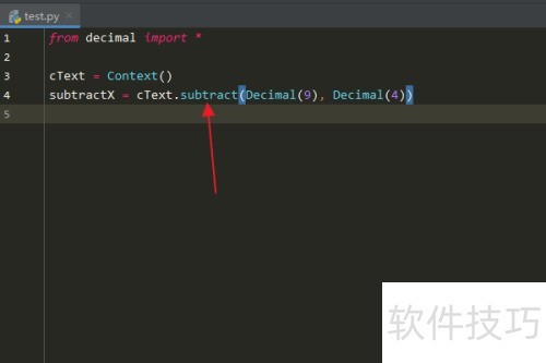 5、 输入subtractX = cText.subtract(Decimal(9), Decimal(4))后,按下回车键执行操作。