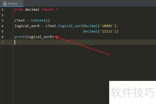 5、 输入logical_xorX = cText.logical_xor(Decimal(10001), Decimal(11111)),然后按下回车键执行命令。
