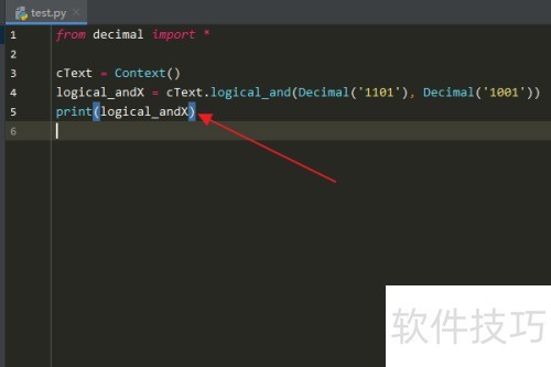5、 输入logical_andX = cText.logical_and(Decimal(1101), Decimal(1001))后,按下回车键执行操作。