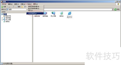 4、 点击下拉菜单,选择文件夹选项…以打开相应设置对话框。