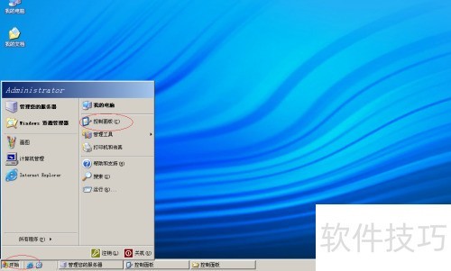 1、 启动Windows Server 2003系统后,单击任务栏上的开始按钮。