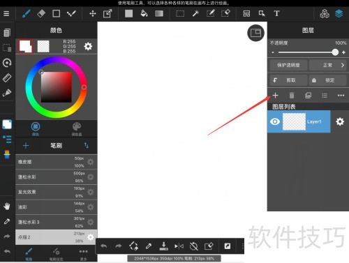 3、 第四步,进入绘画界面后,图层列表上方会出现一个加号图标。
