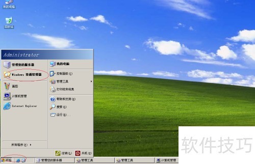 1、 启动Windows Server 2003系统,单击屏幕左下角的开始菜单按钮。