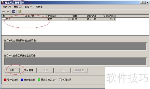 3、 打开磁盘碎片整理工具,点击下方的分析按钮进行检测。