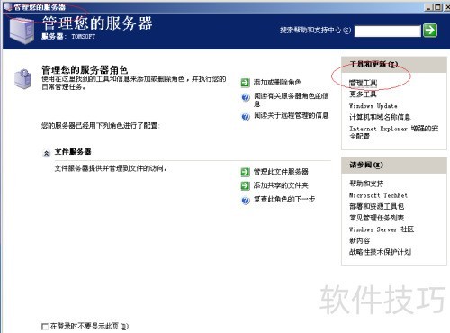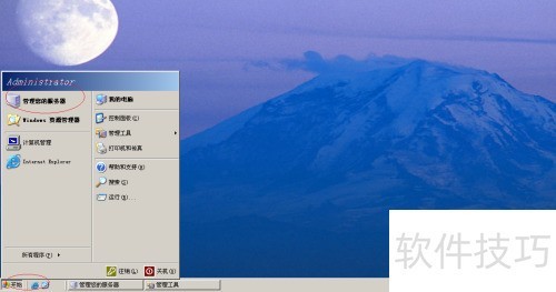 1、 点击任务栏的开始按钮,进入管理您的服务器选项。