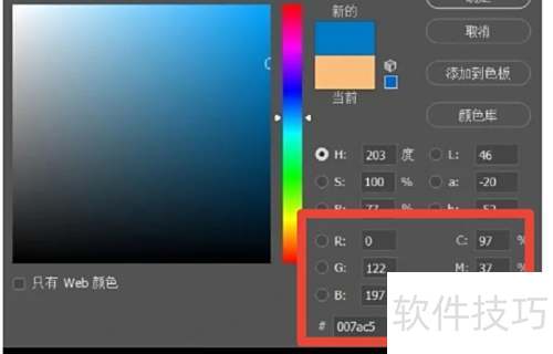 2、 PS处理图像时,C97M37Y0K0代表特定色彩参数组合。