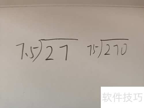 2、 将被除数与除数的小数点同时向右移动,得到算式270÷75。