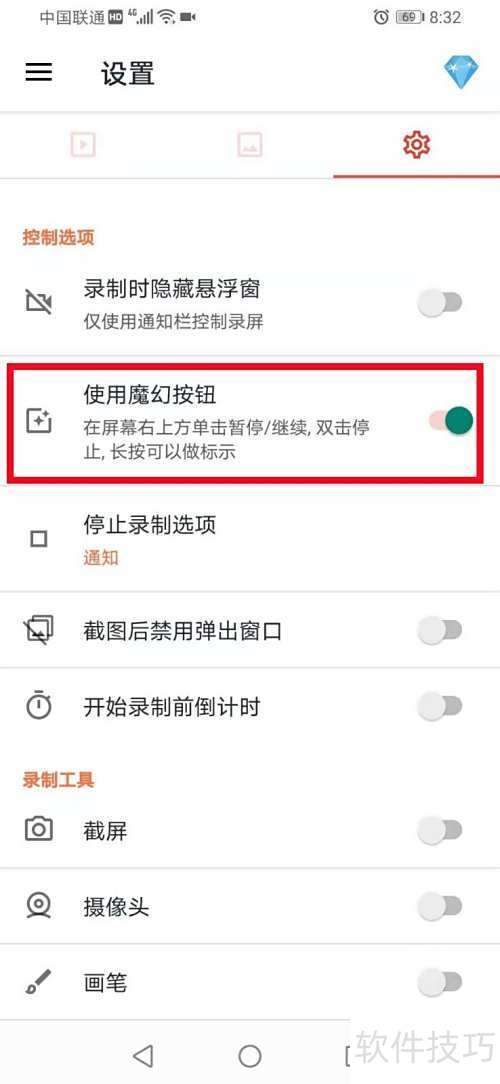 4、 点击魔幻按钮并开启,即可启用其各项功能。