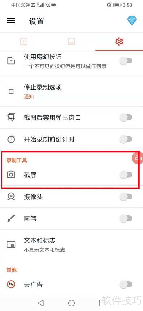 4、 开启截屏功能后,屏幕将显示一个相机图标。