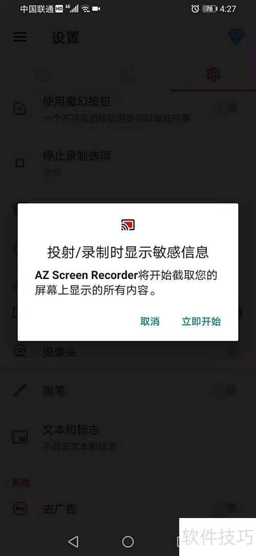 1、 启动手机里的AZ录屏软件即可开始操作。