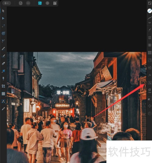 3、 如箭头指示,点击右侧工具栏中的调整图标。