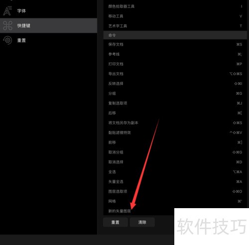 6、 如箭头所示,可重置或删除快捷键。