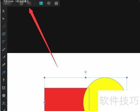5、 点击顶部编辑栏中的...按钮,如箭头所指。