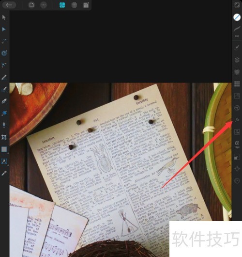 2、 如箭头指示,点击右侧工具栏的调整图标。