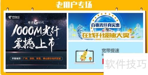 2、 进入宽带页面,滑动查找老用户提速入口。