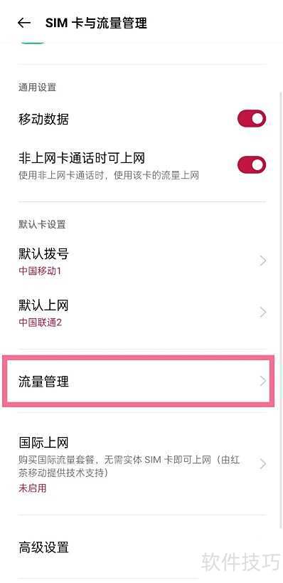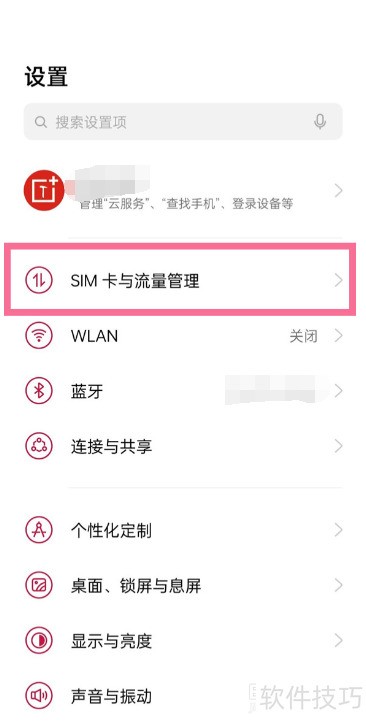 1、 进入手机设置,选择SIM卡与流量管理选项。