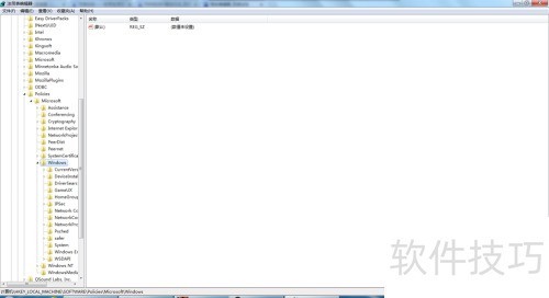 2、 展开注册表中HKEY_LOCAL_MACHINESOFTWAREPoliciesMicrosoftWindows左侧的目录分支。