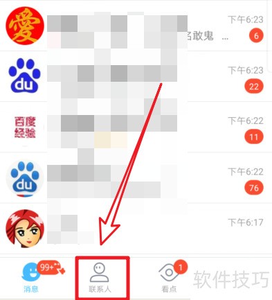 1、 打开手机QQ,点击底部联系人即可进入。