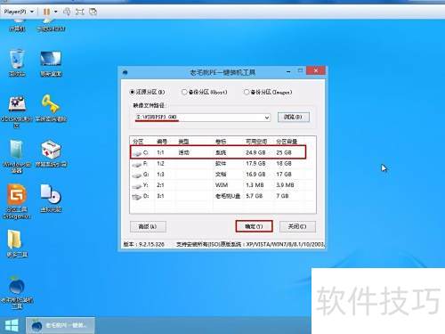 2、 进入PE系统后,老毛桃PE一键装机工具将自动运行。若检测到系统镜像文件,会直接显示路径;未检测到时,可手动点击浏览按钮进行选择,操作所示。