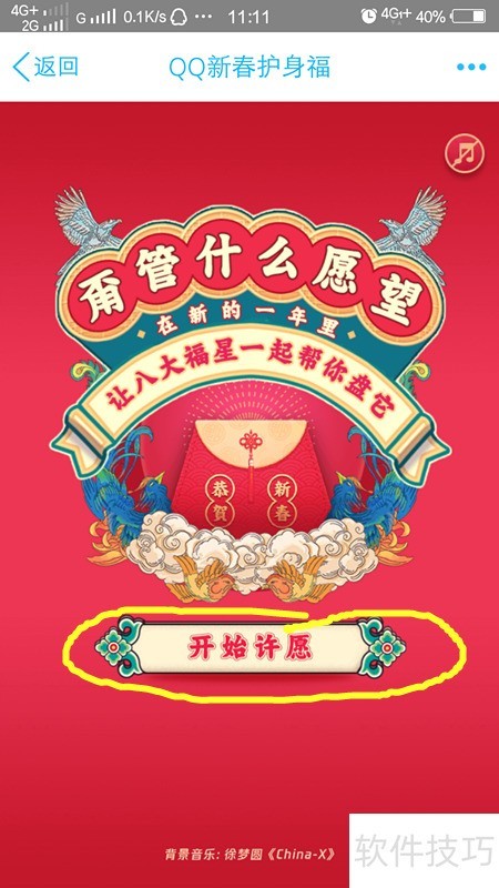 4、 进入QQ新春护身符页面后,点击开始许愿,即可进入许愿界面,所示。