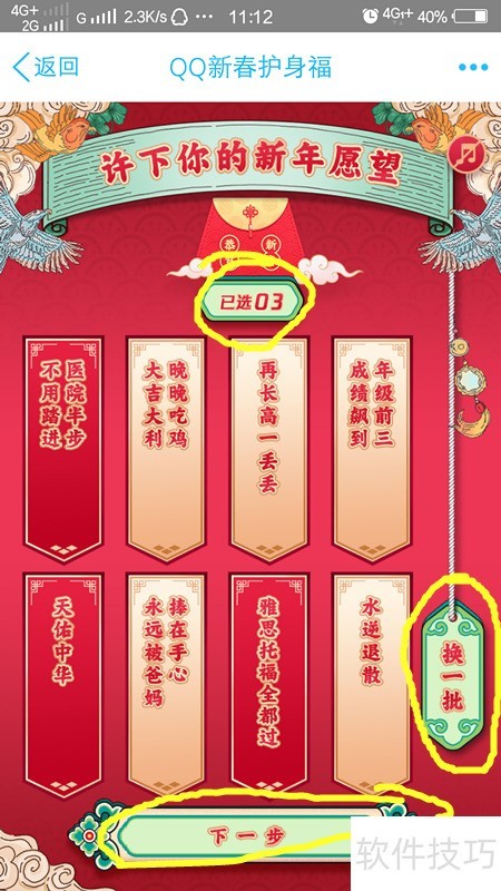 5、 在此界面选择心仪的愿望,若需更换可点击右下角换一批,确认后点击下一步即可,所示。