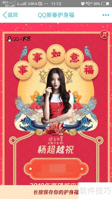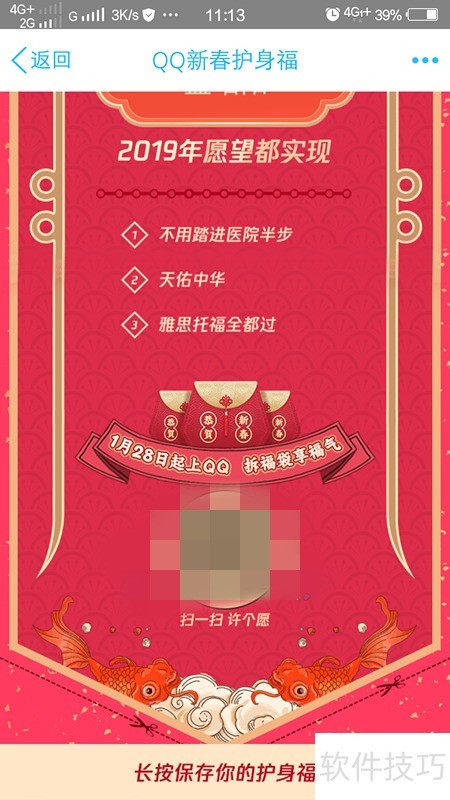 QQ作为常用的社交软件,每逢春节都会推出特色活动。近期上线了新春护身符互动玩法,多位明星参与其中,用户可进行智能许愿,还能收获明星送出的新年祝福,助力实现2019年的美好心愿,一起来体验这份特别的新春惊喜吧。