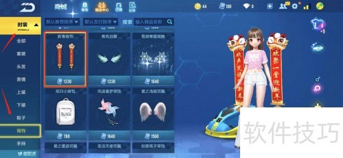 4、 进入商城后依次选择时装、背饰,最后选新春装饰。