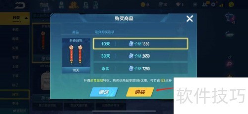 8、 进入时装界面,选择背饰中的新春装饰进行购买。