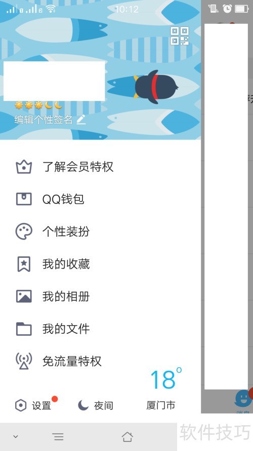 2、 点击聊天页面左上角头像,侧滑菜单随即展开,具体所示。