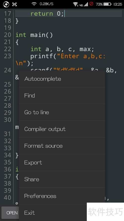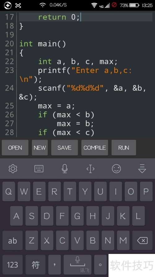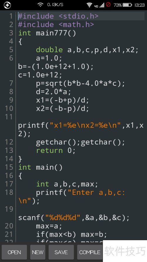 2、 C4droid启动后呈现文本编辑界面,支持直接编写C语言代码。
